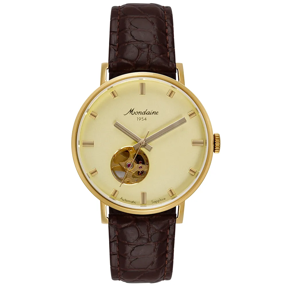 Relógio Mondaine Automático Masculino Open Heart Dourado Couro 32850GPMVDC1