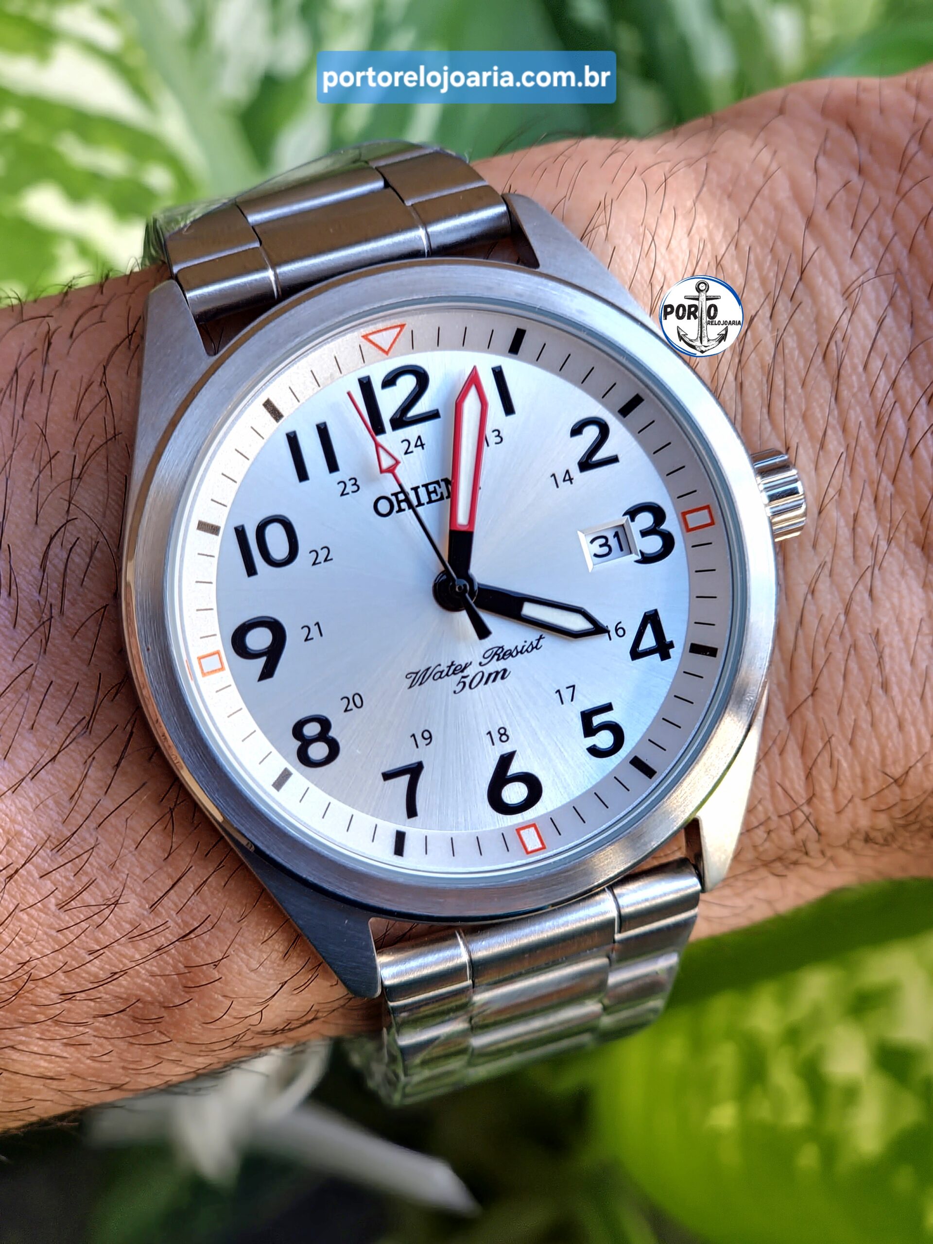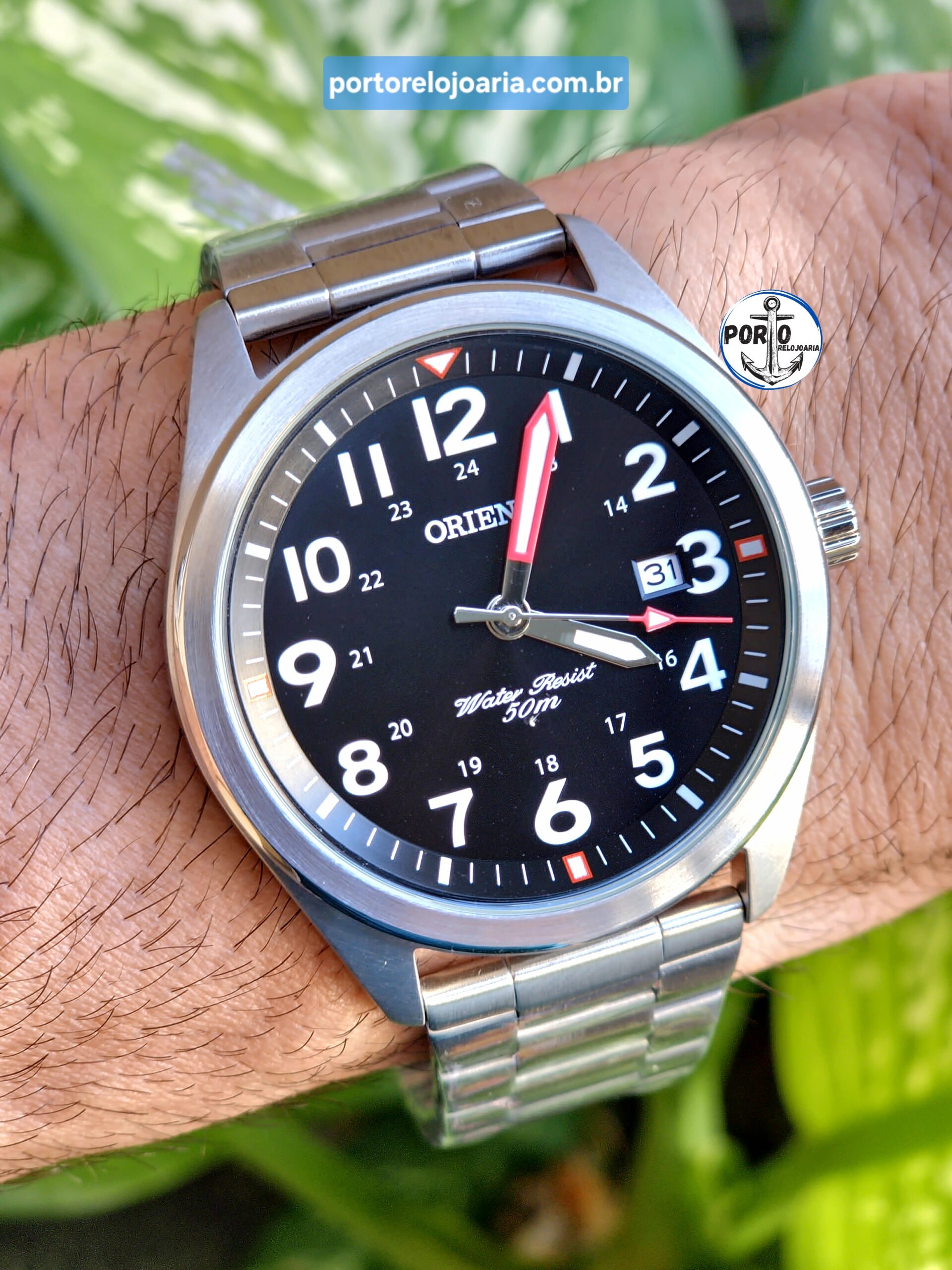 Características: com caixa em aço e pulseira em aço, lúmen