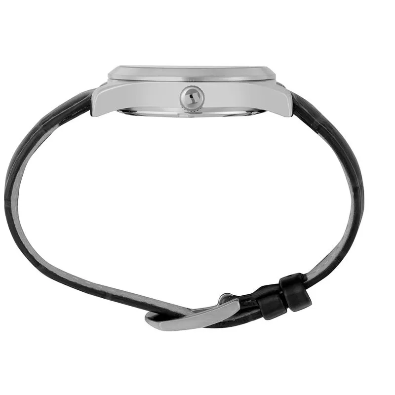 Com um acabamento prateado integral, este modelo apresenta um mostrador diferenciado com efeito gradiente, alojado em uma caixa de aço de 38 mm. O design equilibra a robustez do material com a estética apurada do mostrador.