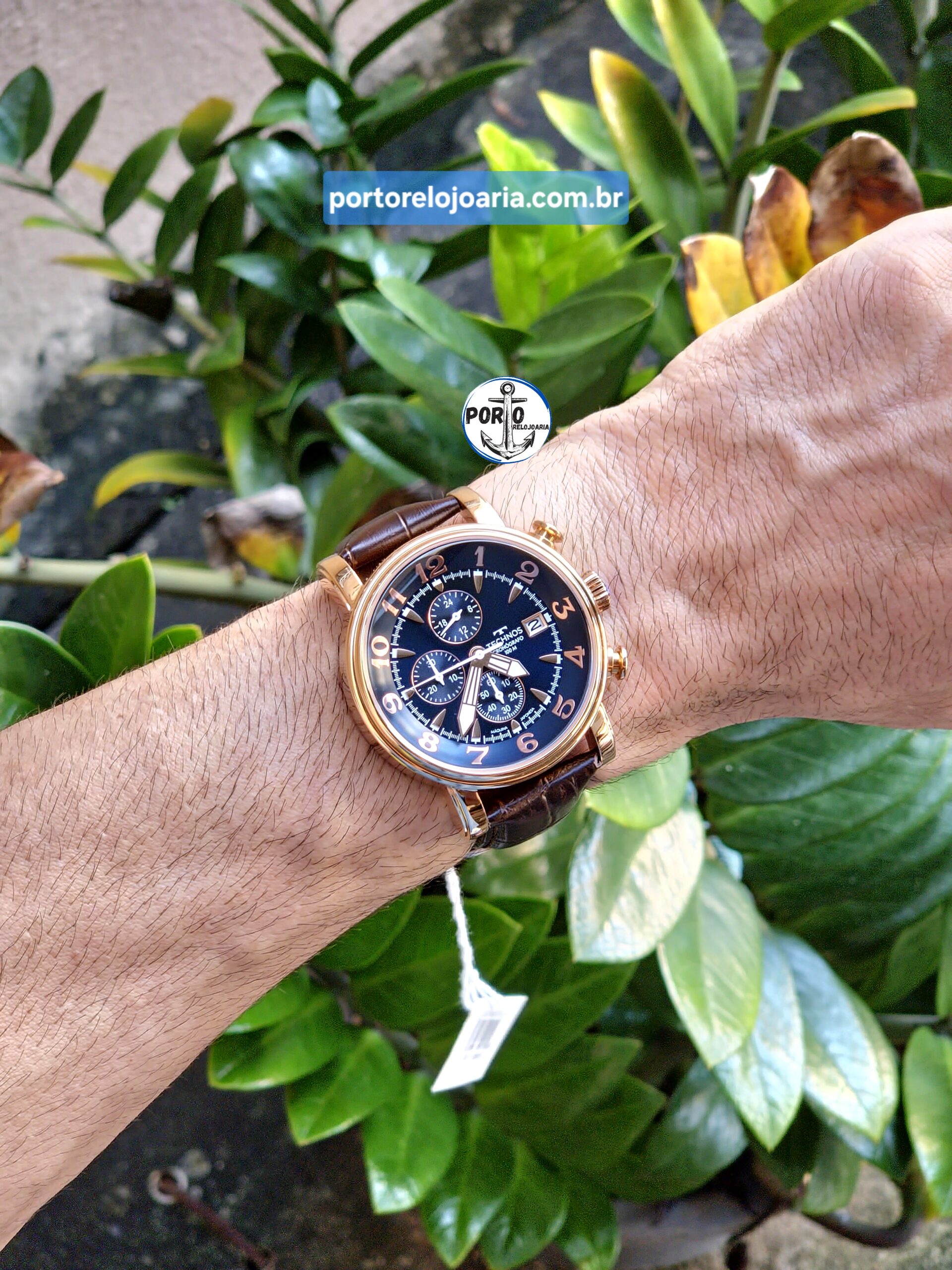 Relógio Technos Grandtech com acabamentos sofisticados, caixa elegante e mostrador azul imponente, rico em detalhes, com numeração arábica completa. Produto 100% em aço inoxidável em banho rosé, com diferenciada pulseira de couro legítimo na cor marrom, máquina quartz Japonesa Miyota, calendário, cronógrafo e resistência à água de 100m. Tamanho de caixa 44mm.