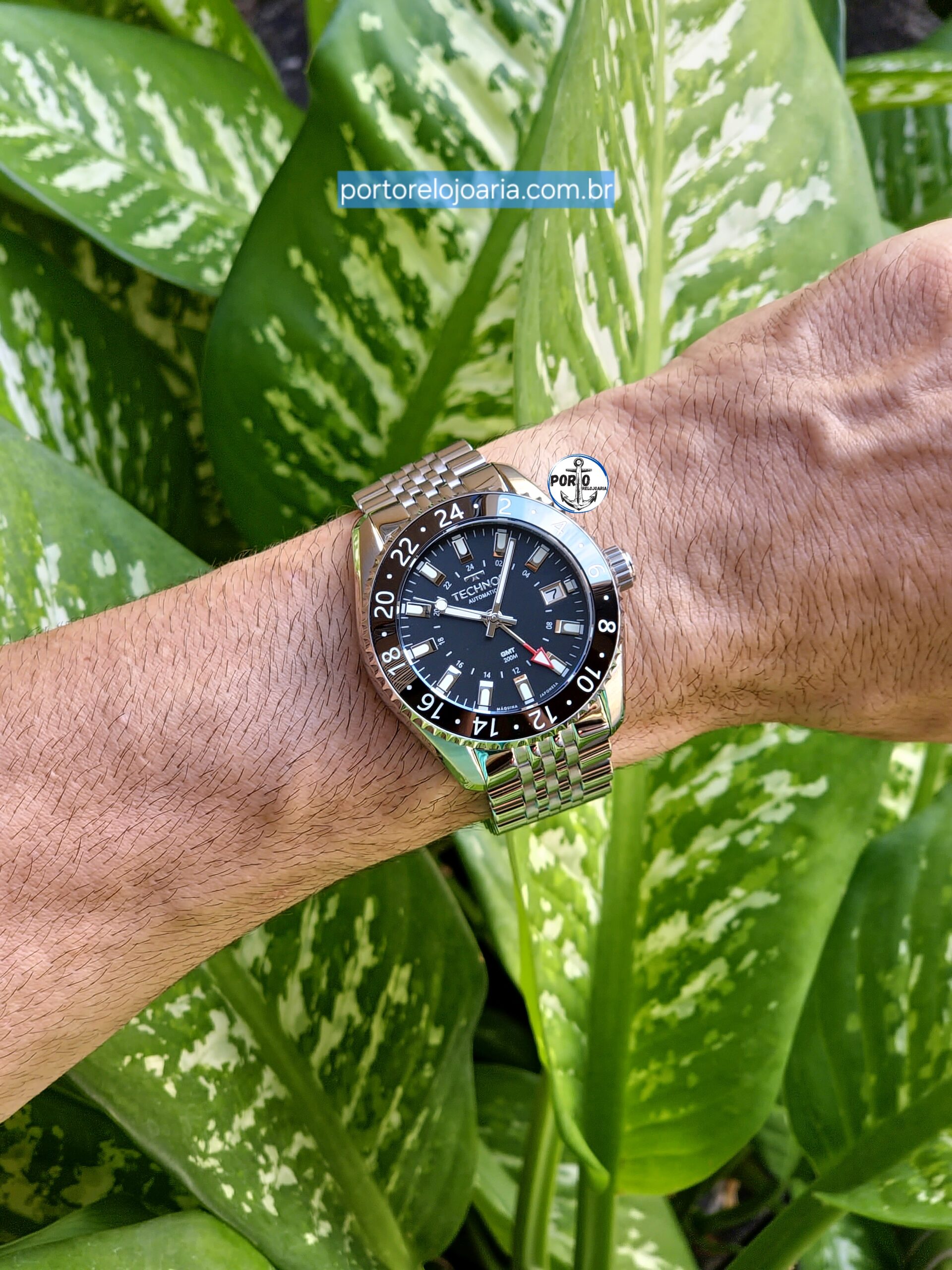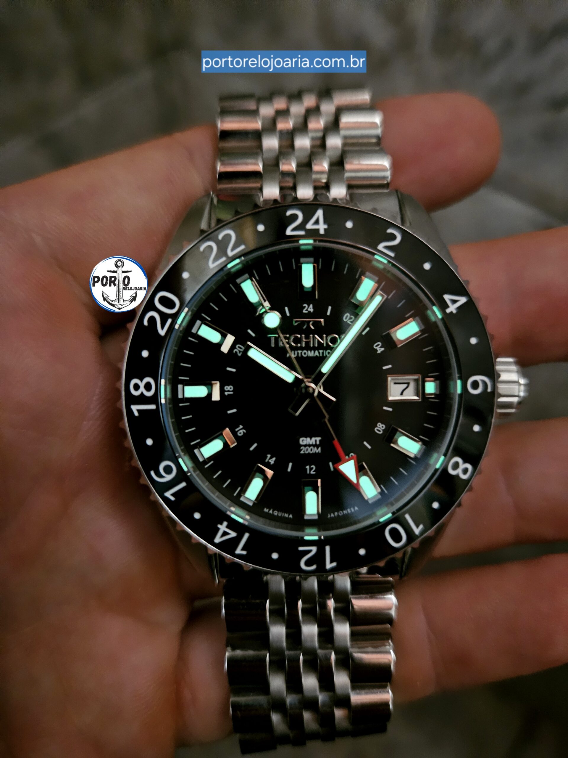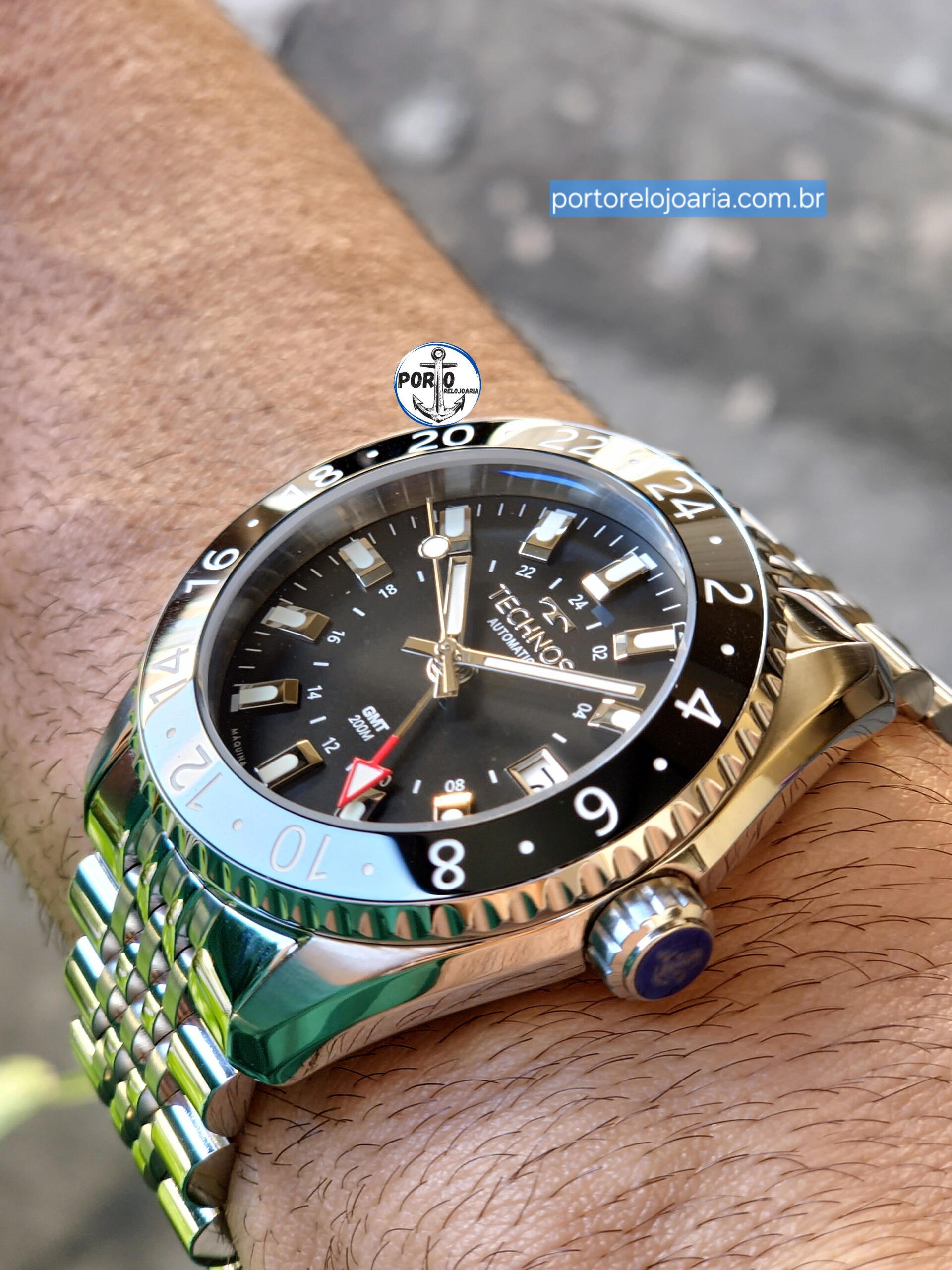 O Technos Automático GMT é uma edição especial limitada que celebra a trajetória global da Technos, com origens suíças, passagem pelo Japão e consolidação no Brasil. Inspirado em um legado que travessou continentes, o modelo traz a presença imponente do quarto ponteiro, que permite a leitura simultânea de até três fusos horários.