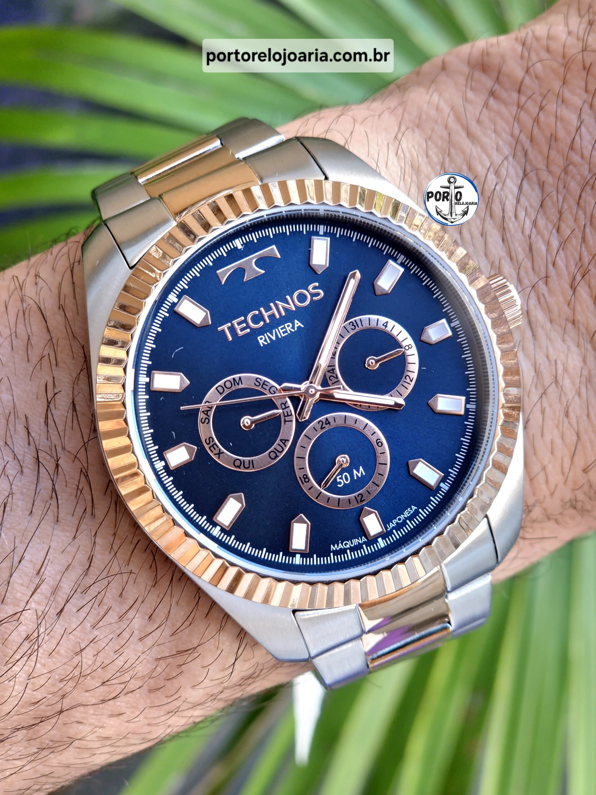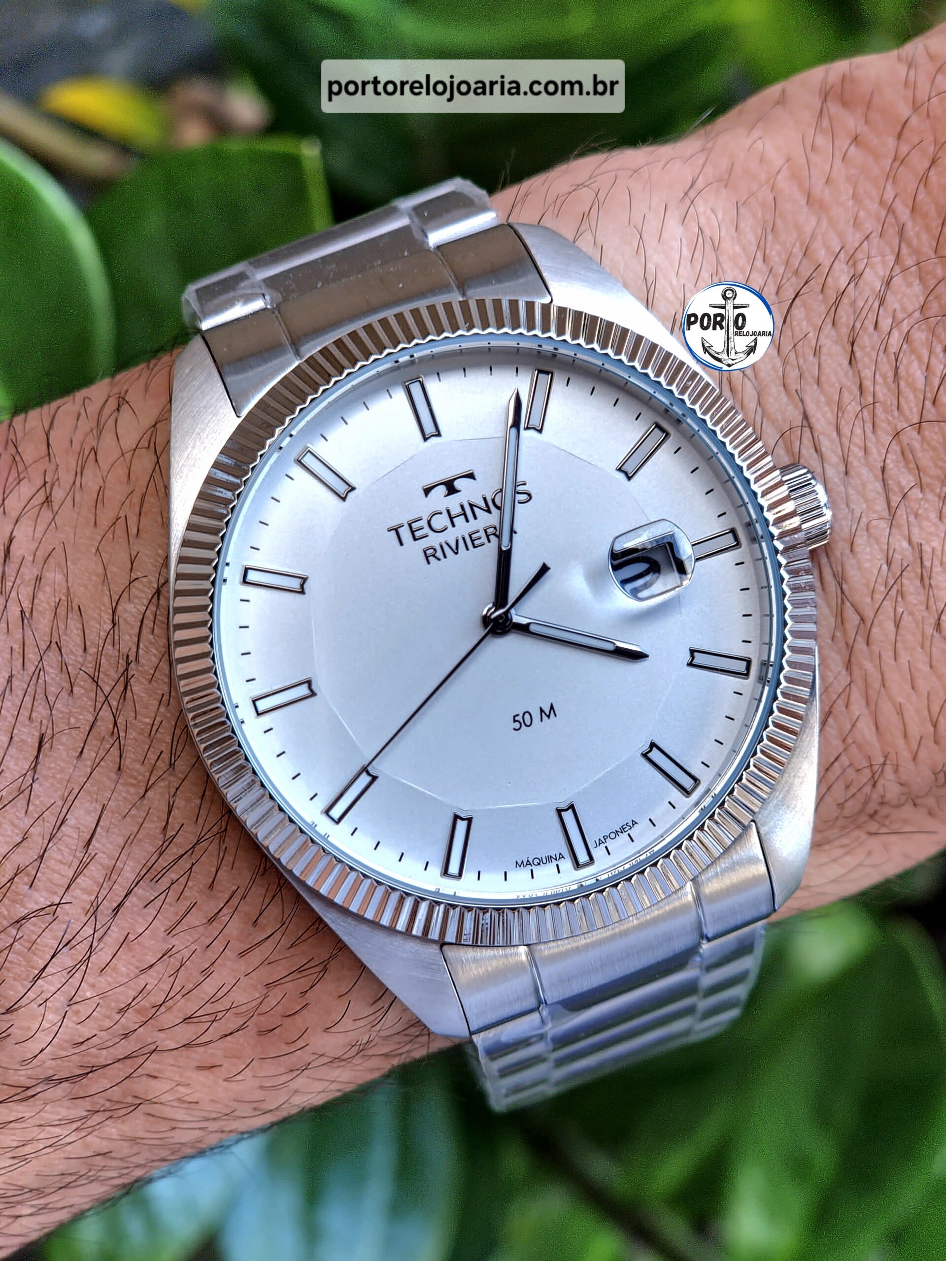 A linha Riviera segue enaltecendo a essência dos clássicos. O novo modelo apresenta um design clássico, com aro corrugado e assinatura de linha, além de possuir multifunção. Produto 100% em aço inoxidável, com máquina quartz japonesa Miyota, calendário e resistência à água de 50 metros.